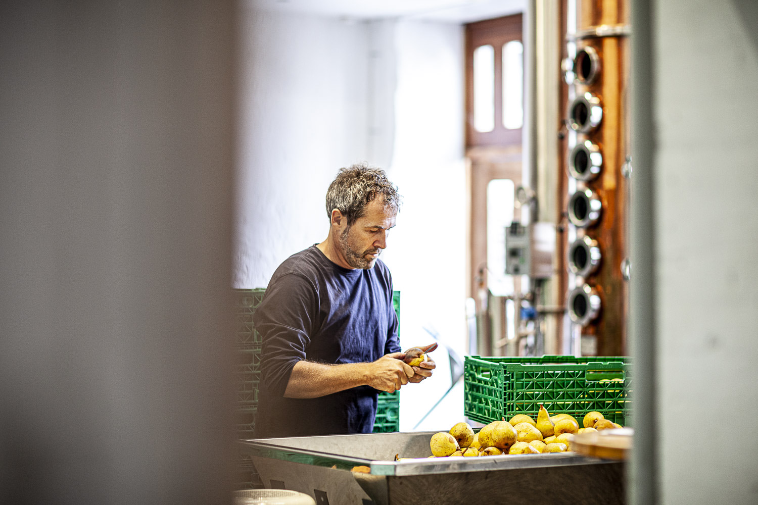 Destillat aus gedörrten Bündner Birnen, veredelt mit eingelegten Dörrbirnen. Das ergibt die dunkle Farbe und die angenehme Fruchtsüsse.